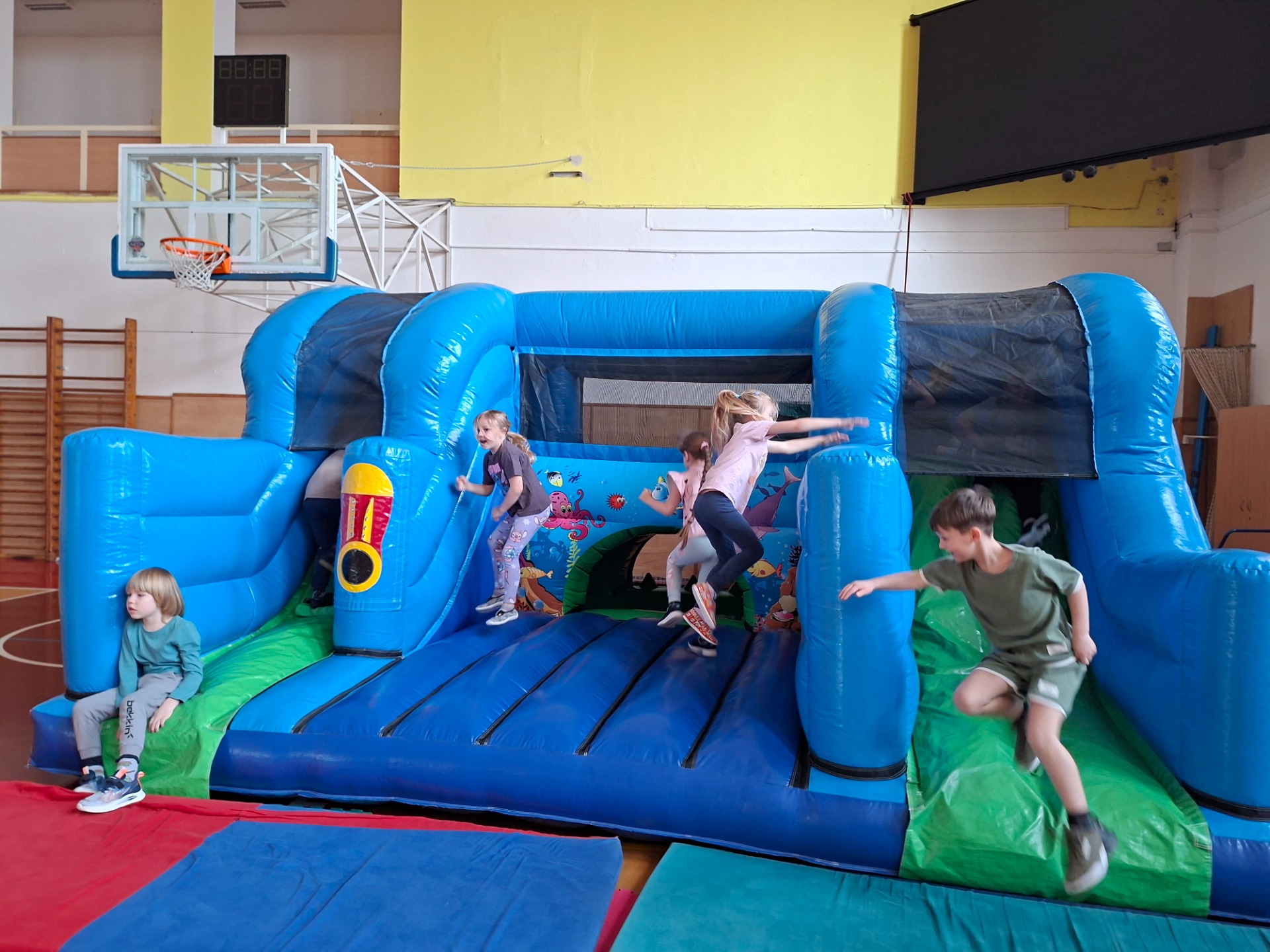 Tak jako každý rok jsme s s dětmi využily úžasné cvičení na obří nafukovací matraci.