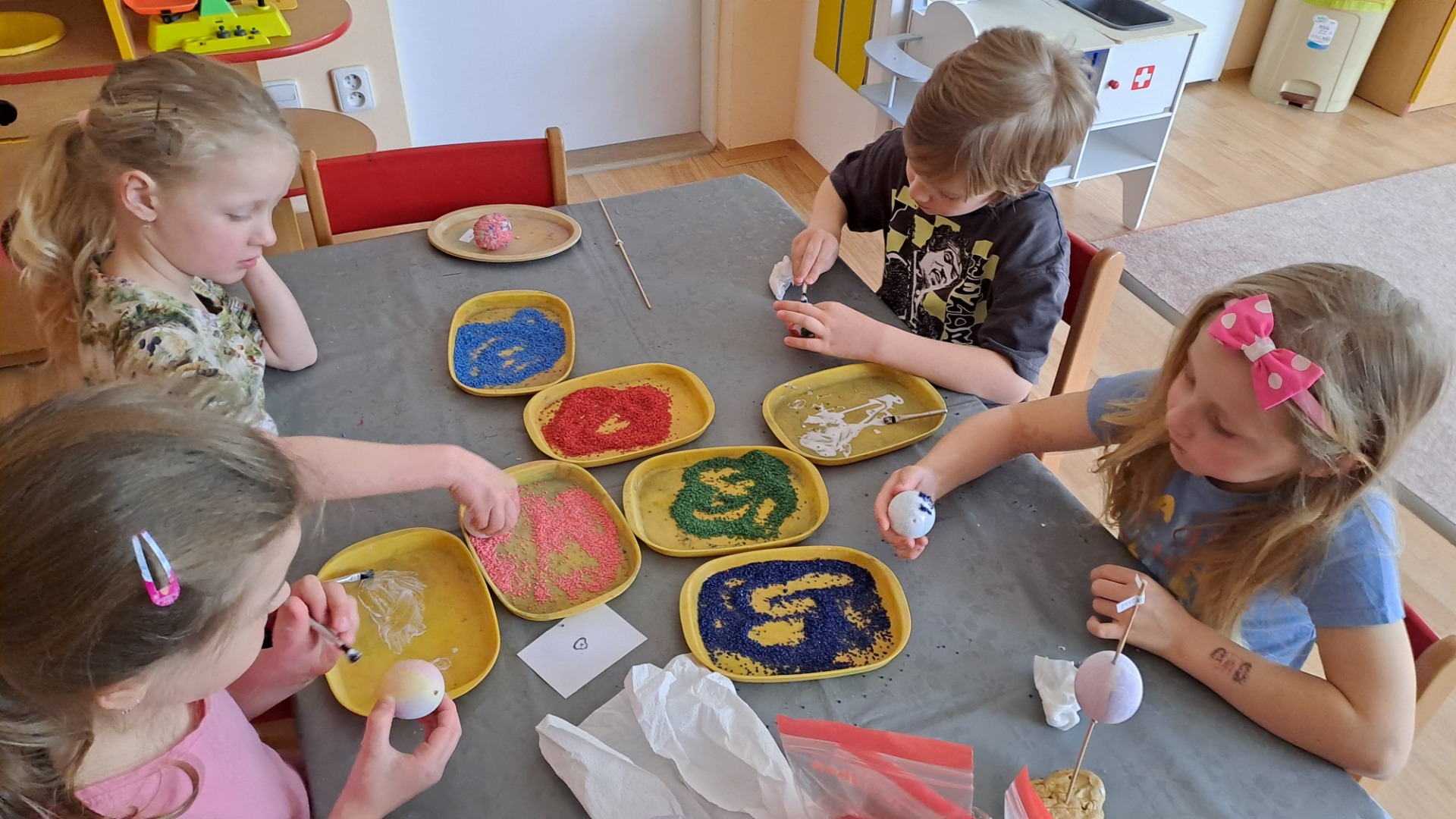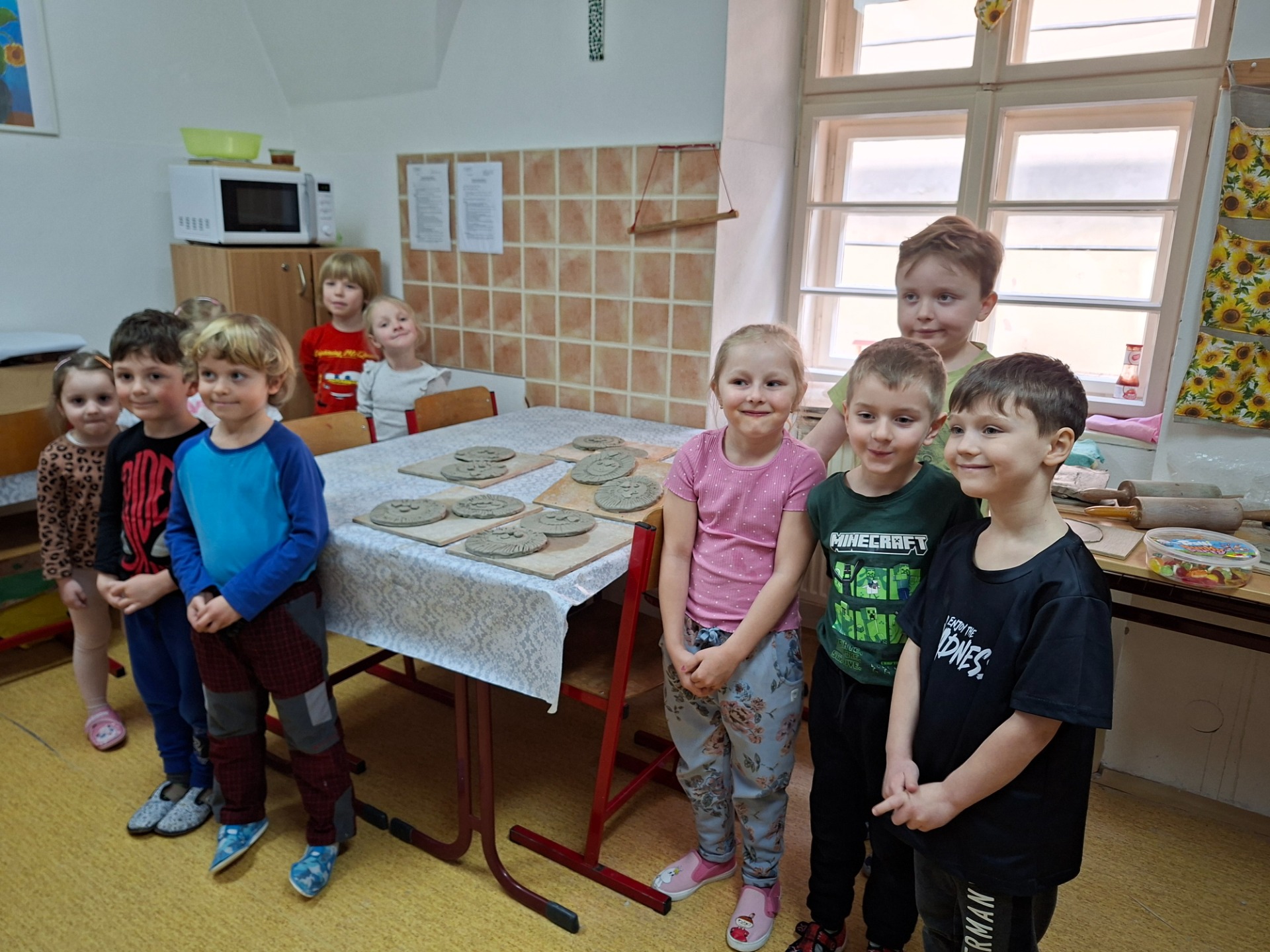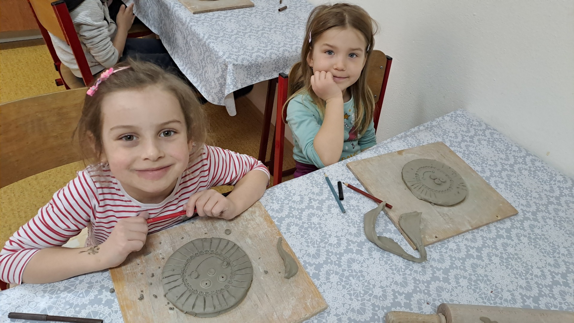 Ve dvou skupinách děti navštívily Církevní základní školu a vyrobily si z hlíny krásné sluníčko.