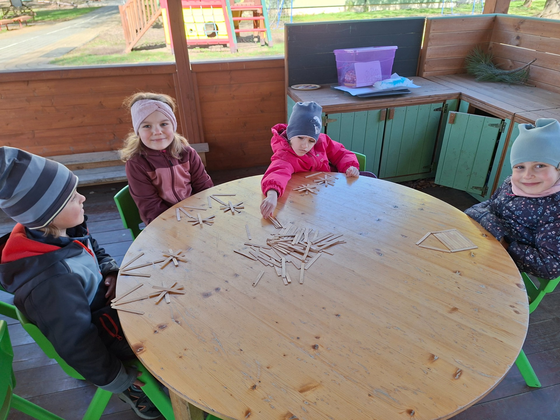 Činnosti ve venkovní učebně nás moc baví, jsme moc rádi, že ji můžeme využívat.