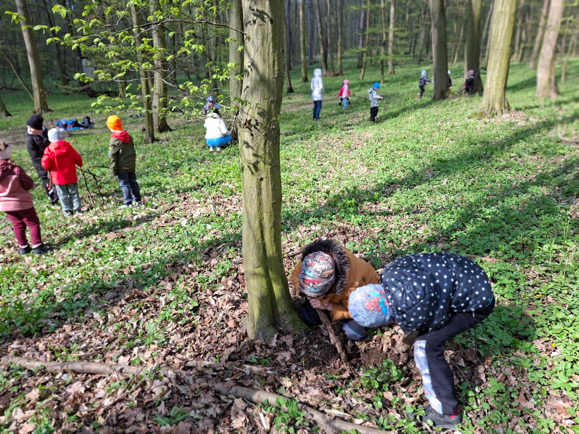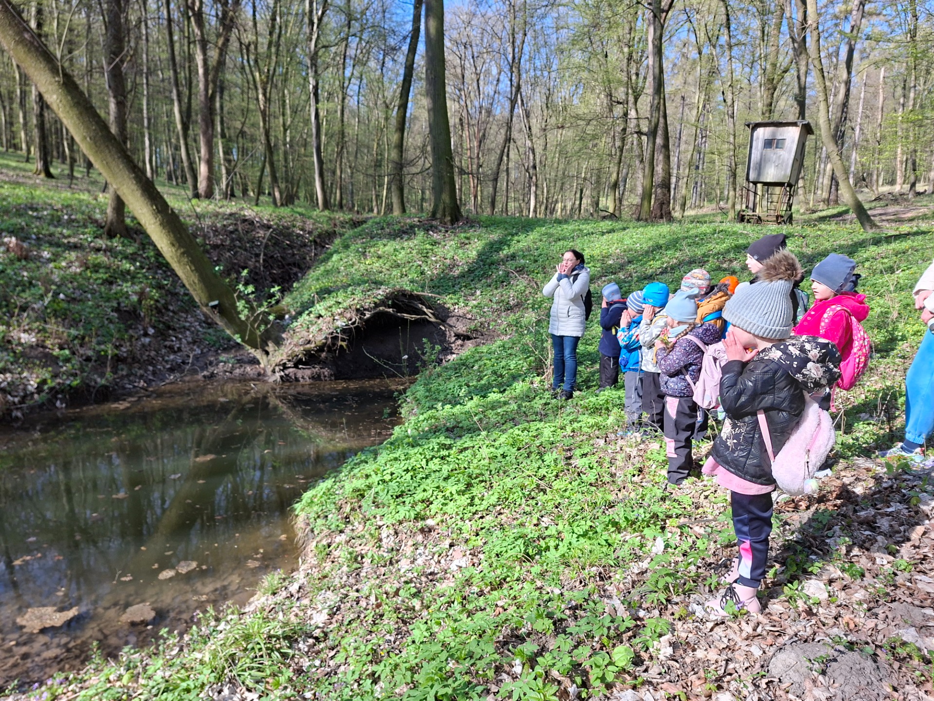 Děti si v lese hrály, stavěly domečky a zaběhaly si