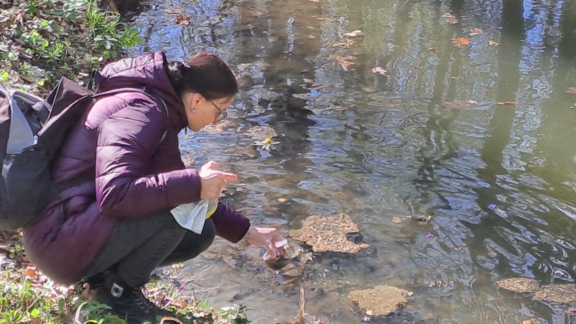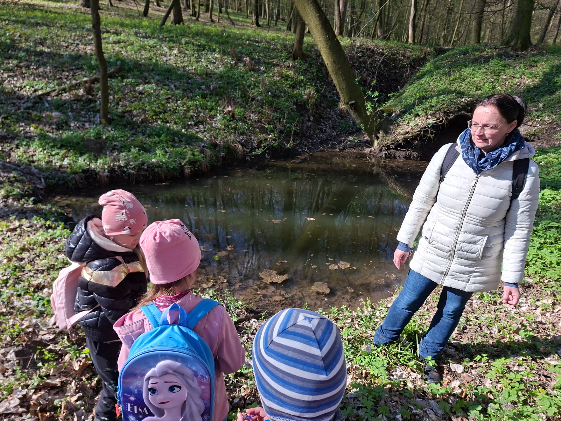 Děti si poslechly příběh o paní hraběnce, která se v létě chodívala koupat do jezírka. Házely kaštánky do vody, pozorovaly kruhy na hladině a poslouchaly zvuky vody.