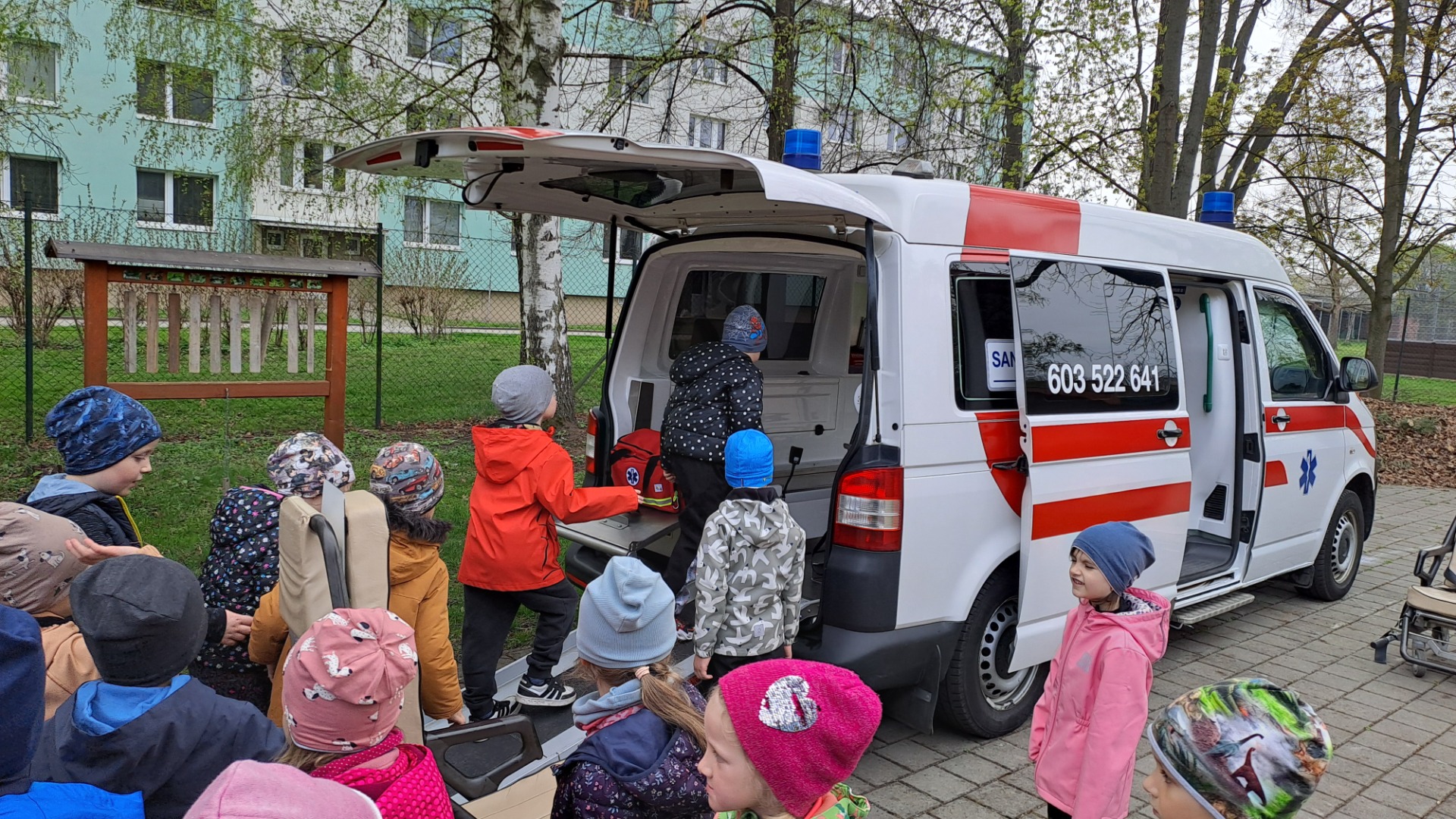 Žáci z Církevní základní školy přišly za dětmi do školky z programem první pomoci, se kterou vyhrály krajské kolo soutěže. Děti si zkusily různé činnosti související s první pomocí. Dětem se program velmi líbil.