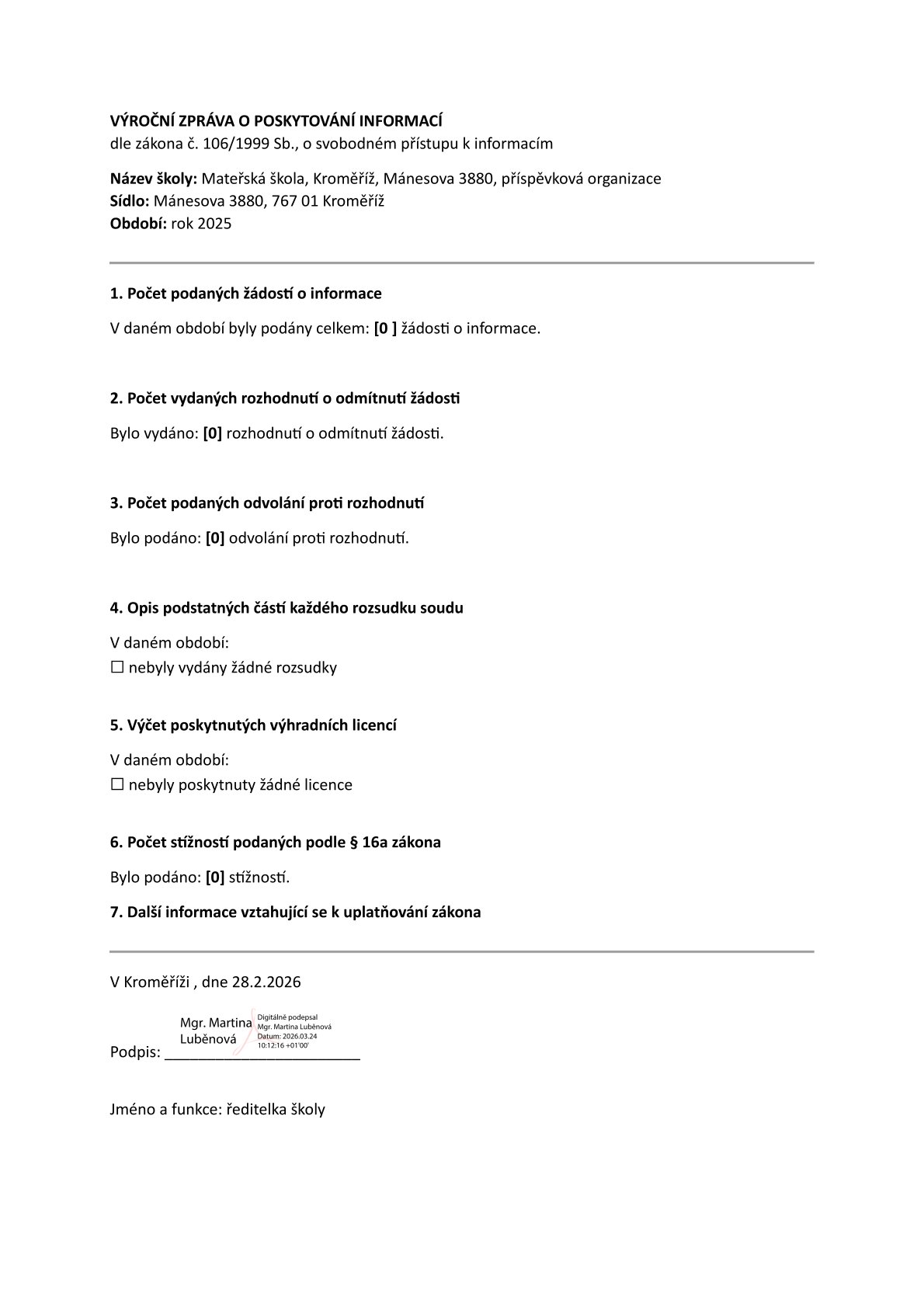 Výroční zpráva o poskytování informací